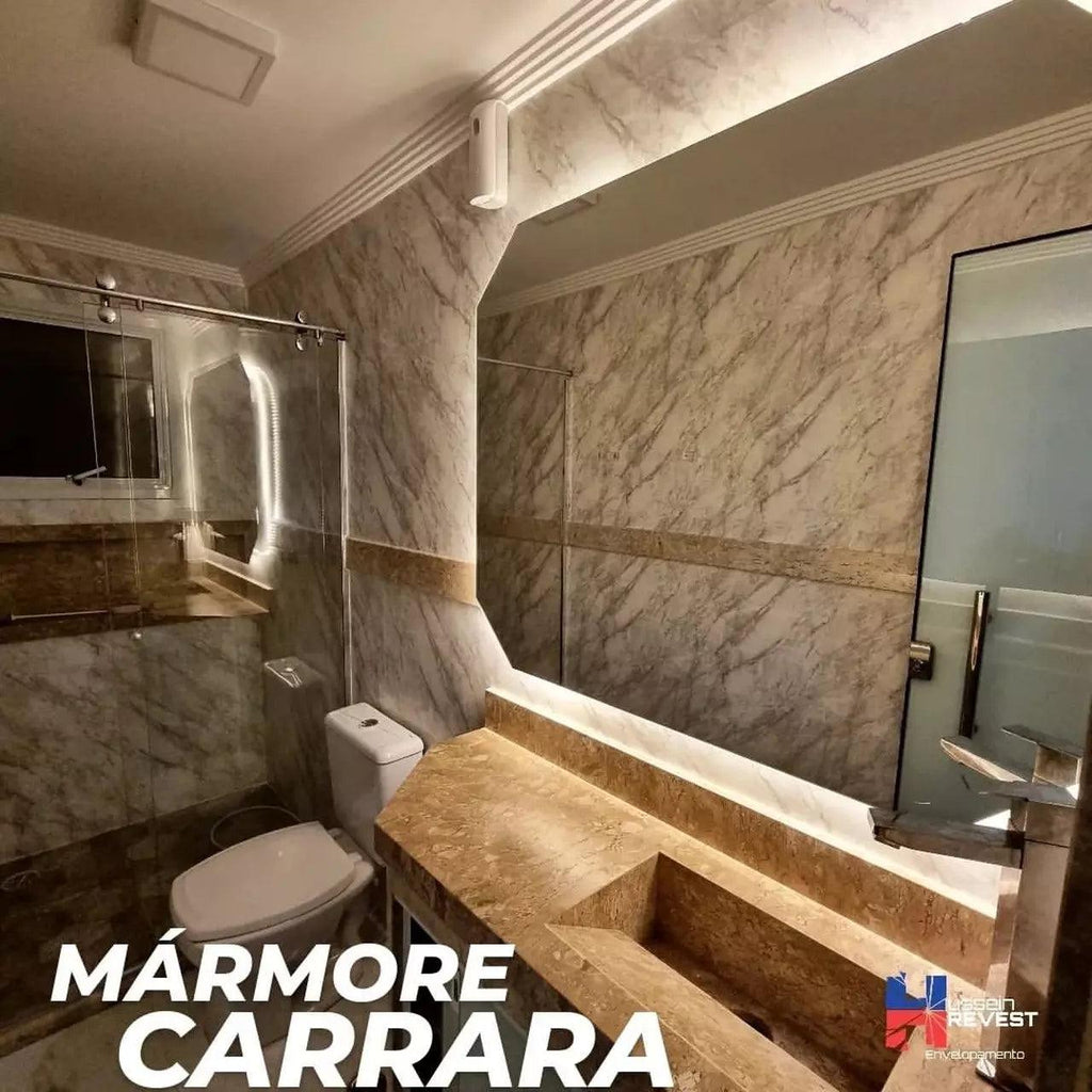 Papel de Parede Adesivo Textura Pedra - Mármore Carrara sem brilho | Vinílico Lavável Sem brilho | 1,22m Largura | Venda por Metro